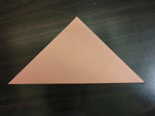色がついてる面を表にして三角に折ります。