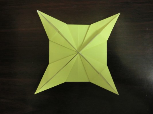 4つの角を中心にあわせて折ります。