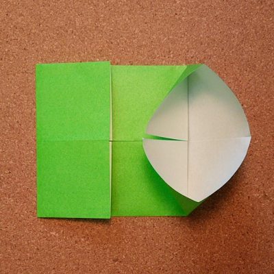【15】 左側も同じように袋状に開いて折りたたみます。