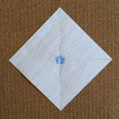 【2】 まずは折り紙を三角に折ります。