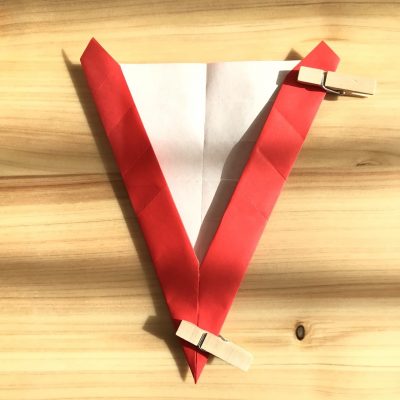 始めんい折り目を付けてから、折り目に沿って折っていくだけです。