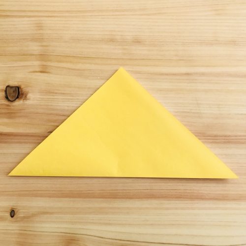 【1】 三角形になるように半分に折って、折り目をつけたら戻します。