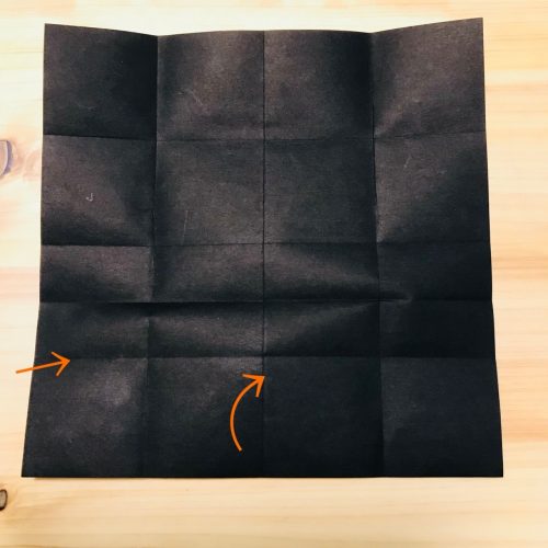【11】 黒い部分の四方の角をそれぞれ内側に折ります。