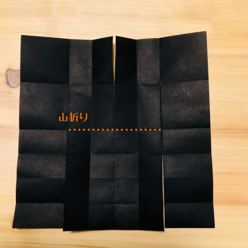 【3】 上下の面を中心線まで折り、折り目をつけたら戻します。