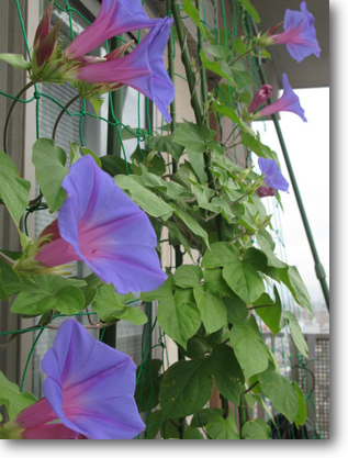 朝顔のツルをどのように伸ばしていくのか、という事を『仕立て(したて)』と言います ヾ(=^▽^=)ノ