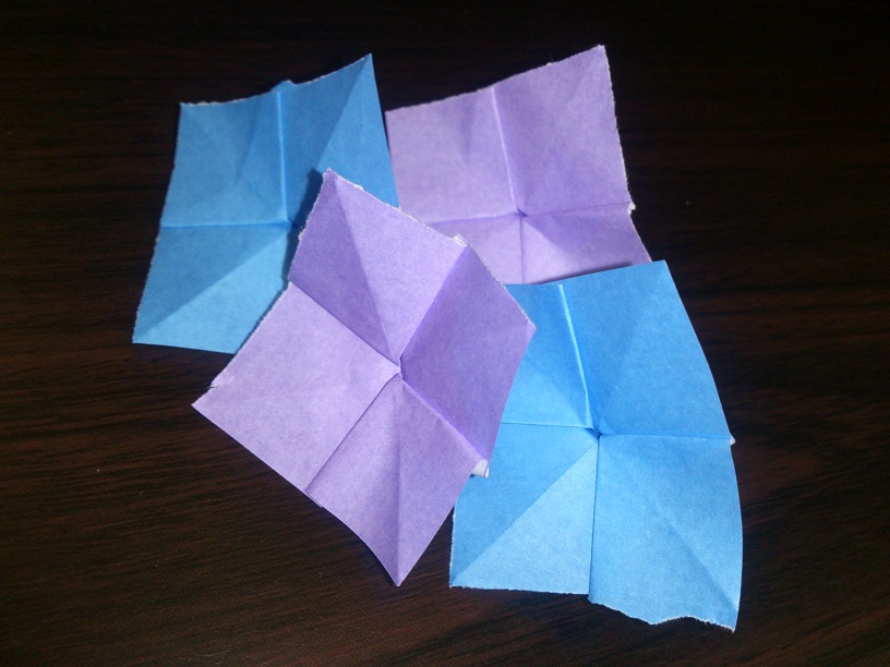 早速小学生の2年生になる息子と、折り紙であじさいを折ってみました ヾ(=^▽^=)ノ