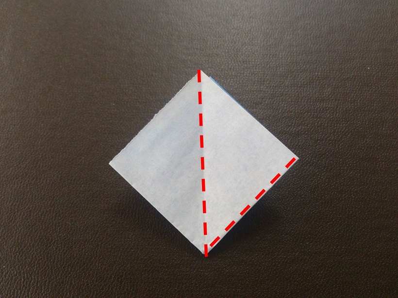初めの三角と四角の折り目は、ここにあるように1回1回開いて折っていくと、畳む時に楽ですよ^^