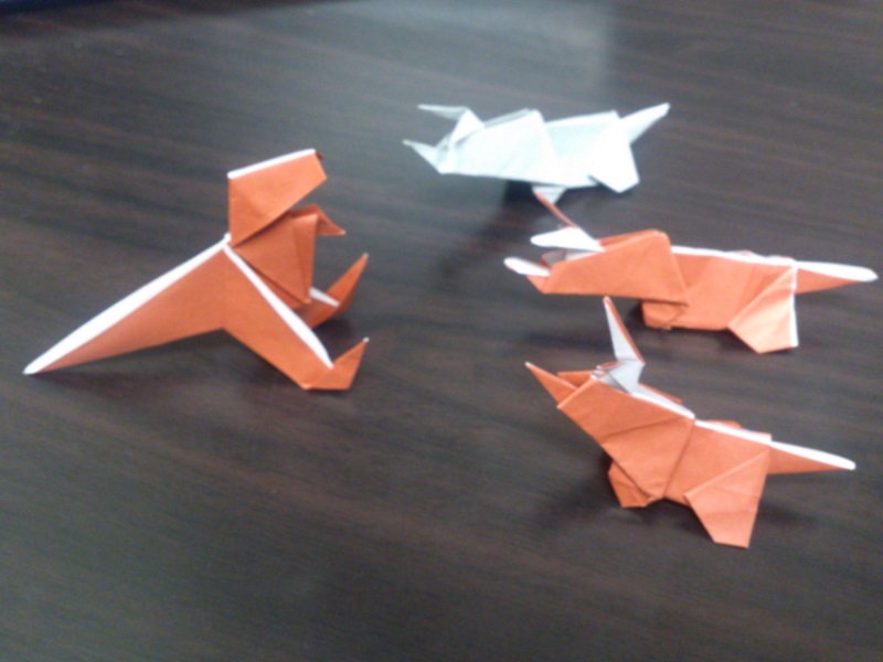 恐竜のティラノサウルスの折り方は、途中まで鶴と同じです ヾ(=^▽^=)ノ