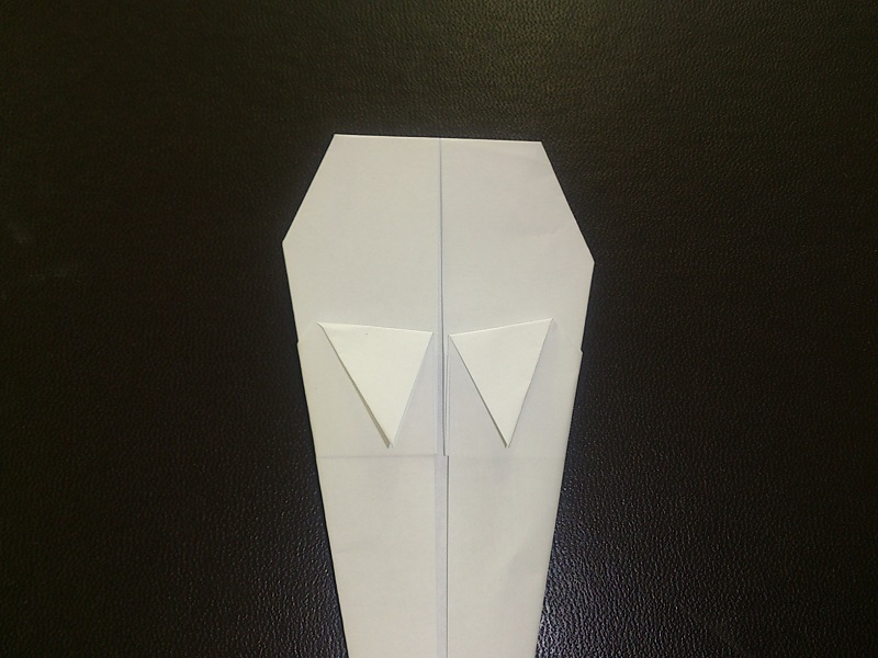 上を後ろに折って頭を作ります。